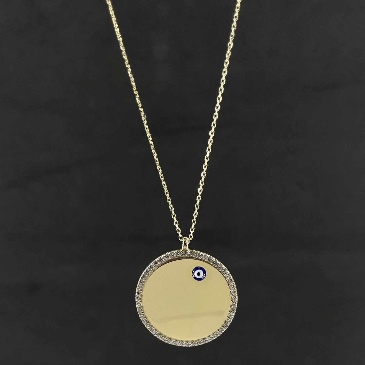 Nazar Boncuklu Taşlı Plaka Kolye